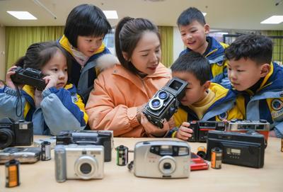 2024年2月29日,浙江省湖州市长兴县雉城幼儿园开展了“幼儿园里学摄影”活动。摄影老师带领小朋友们全方位的了解各种各样的相机和使用方法,手把手地带大家体验拍照。同时,通过新旧相机的对比,让孩子体会现代化带来的便利,感恩科技的进步,珍惜来之不易的生活。