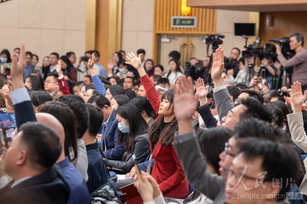 记者争相举手提问。