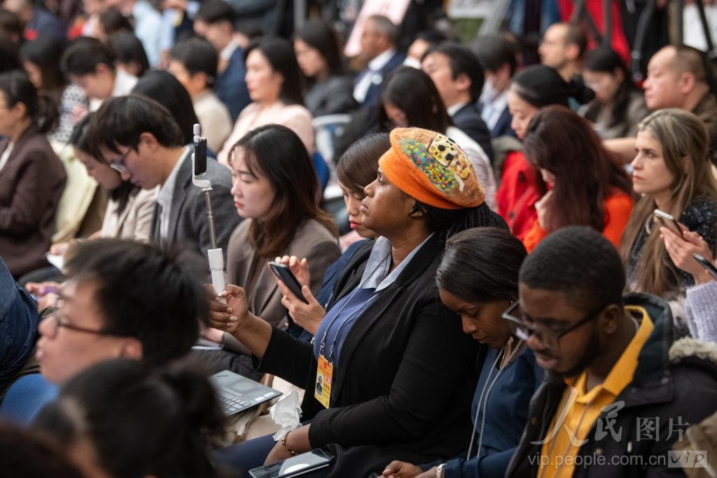 中外记者在采访。