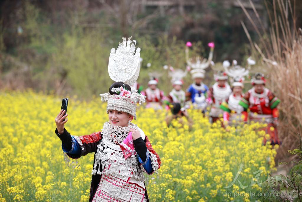 春日时节,贵州省黔东南苗族侗族自治州丹寨县的传统苗寨、乡野田间春华绽放,吸引游人赏花游玩,乐享春光。