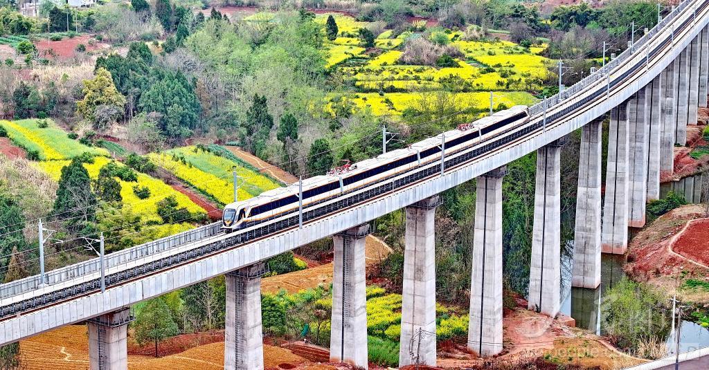 2024年3月17日,一辆电客车首次在成都轨道交通资阳线上全线进行接触网热滑试验。