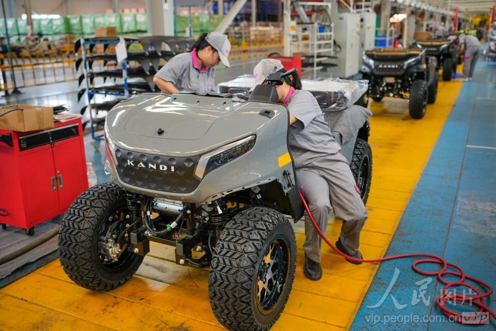 2024年3月19日,在海口国家高新区美安生态科技新城康迪电动汽车车间,工人在进行电动车的组装。 据了解,该公司具备年产10万辆各种纯电动车辆的能力,自行设计开发了具有自主知识产权的新能源汽车十余种车型,其中M系列高尔夫跨界车在美国成为爆款,产品非常畅销,同时公司正逐步开发欧洲、南美洲、东南亚等市场。