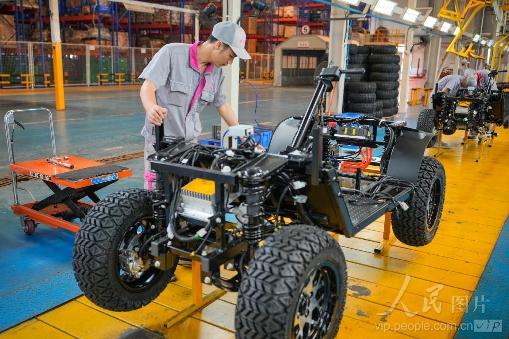 2024年3月19日,在海口国家高新区美安生态科技新城康迪电动汽车车间,工人在进行电动车的组装。 据了解,该公司具备年产10万辆各种纯电动车辆的能力,自行设计开发了具有自主知识产权的新能源汽车十余种车型,其中M系列高尔夫跨界车在美国成为爆款,产品非常畅销,同时公司正逐步开发欧洲、南美洲、东南亚等市场。