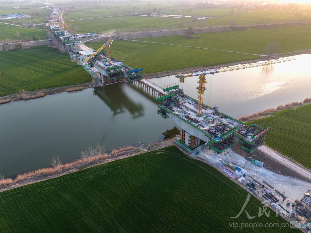2024年3月20日,安徽省宿州市宿固高速控制性工程新汴河大桥项目正在紧张施工。