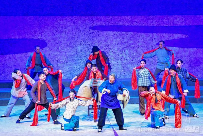 2024年3月22日,在安徽亳州药都大剧院,演员正在演唱红色现代戏剧淮北梆子戏《英雄·母亲》。