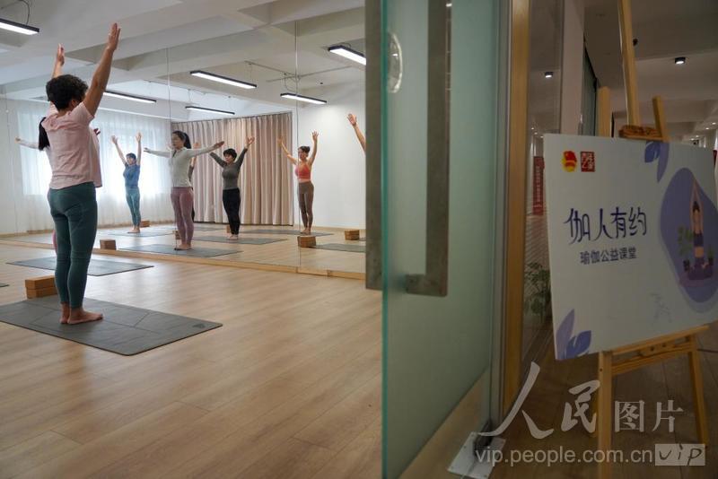 3月20日,在宁波市江北区甬江街道湾头未来社区,居民在社区瑜伽公益课堂上学瑜伽。