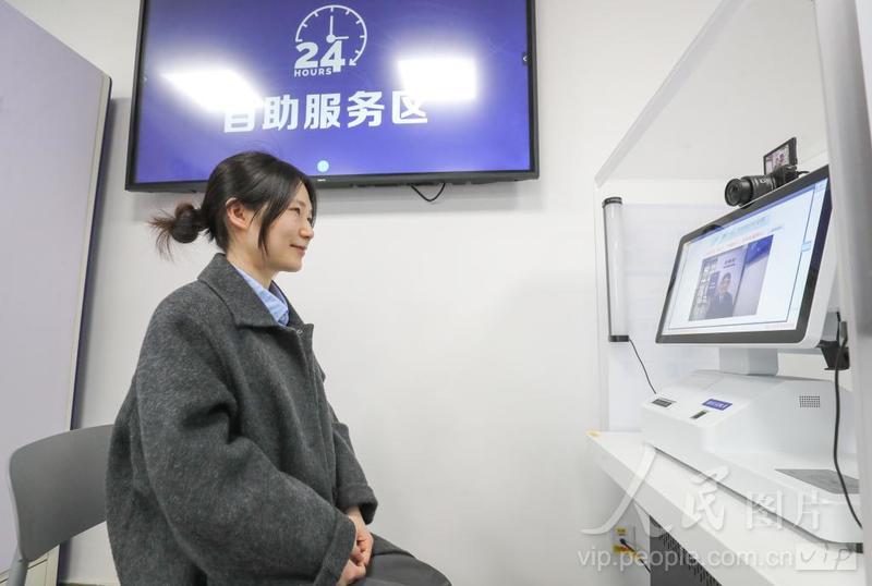 2024年3月28日,在浙江工业大学莫干山校区的共富警务工大驿站,大学生在自助服务区拍摄证件照。
