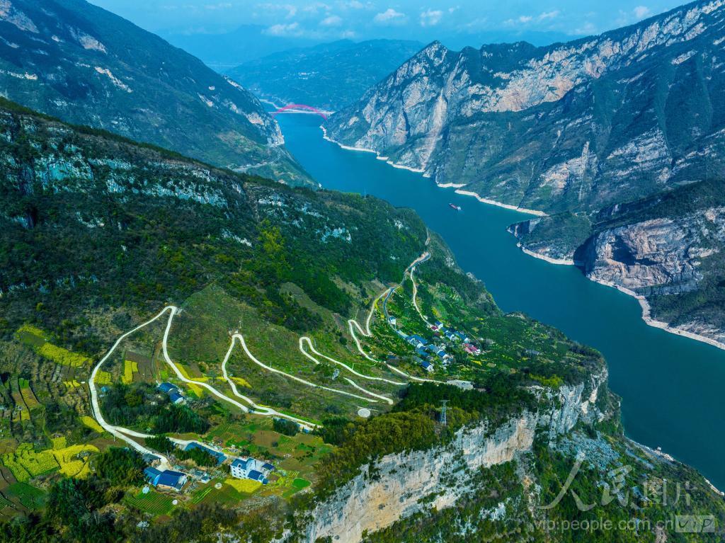 2024年3月28日,长江三峡西陵峡里的湖北省宜昌市秭归县屈原镇链子崖村,新修的乡村公路穿行在美丽的峡江风景之中。