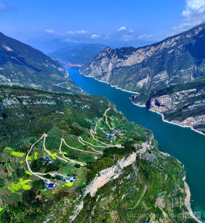 2024年3月28日,长江三峡西陵峡里的湖北省宜昌市秭归县屈原镇链子崖村,新修的乡村公路穿行在美丽的峡江风景之中。