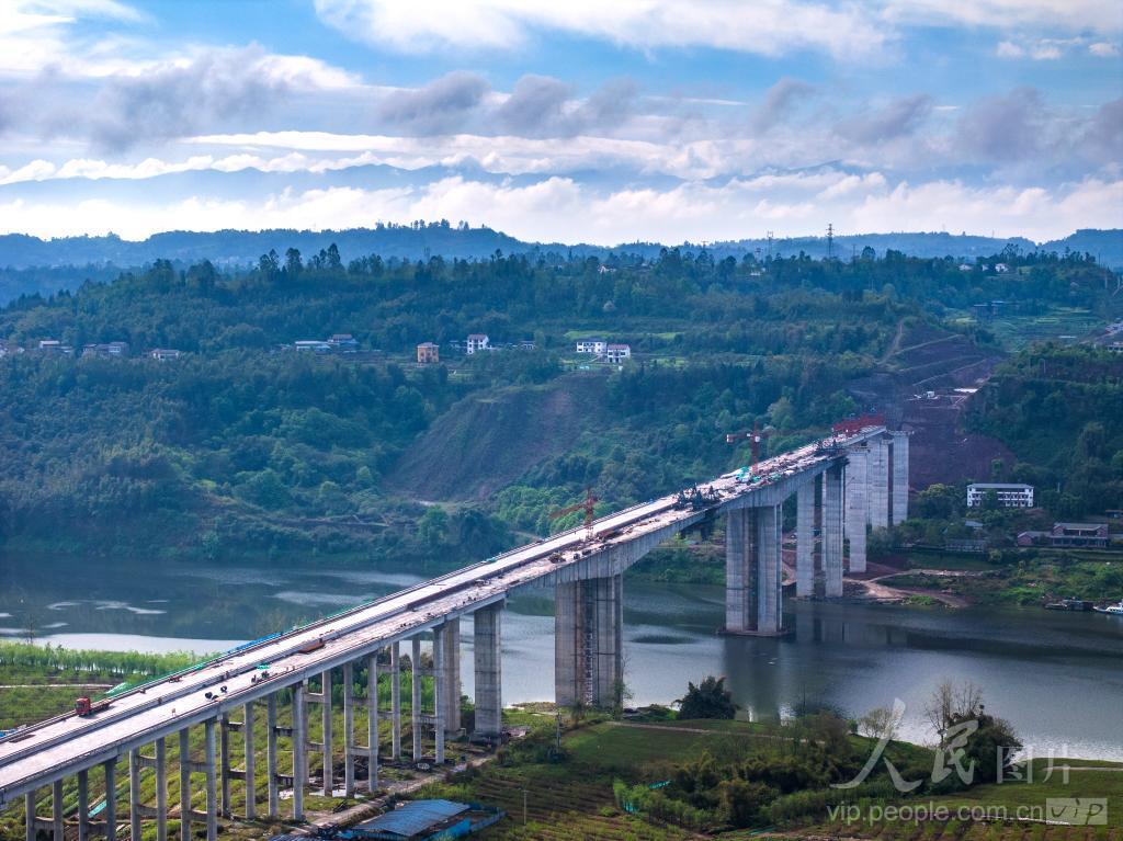 2024年4月3日,正在加快建设中的四川省广安市大龙渠江特大桥。