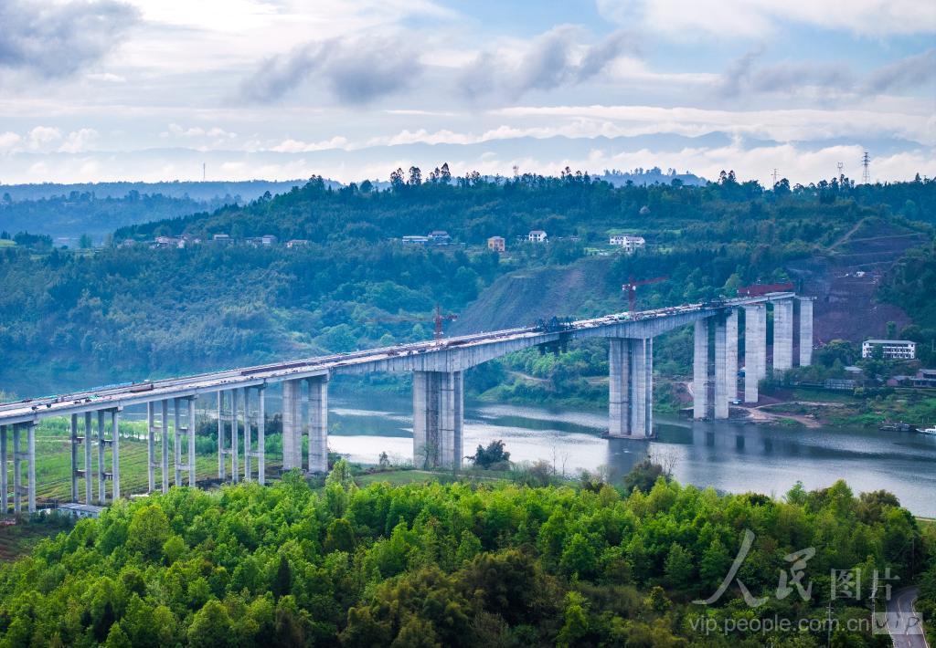 2024年4月3日,正在加快建设中的四川省广安市大龙渠江特大桥。