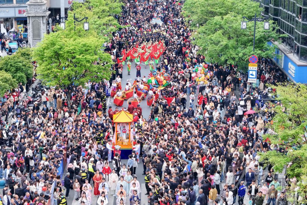 2024年4月4日,浙江省湖州市德清县新市镇举办第26届蚕花庙会,蚕花姑娘大巡游吸引大批市民、游客前来观看。蚕花庙会在当地被称为“轧蚕花”,每到清明,周边村民、蚕农都会争相前来“轧蚕花”,祈祷蚕桑丰收。