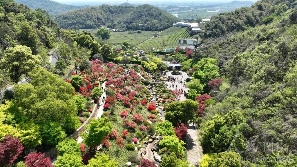 2024年4月5日,游客在浙江省湖州市德清县下渚湖上渚山奇幻谷赏花游玩。