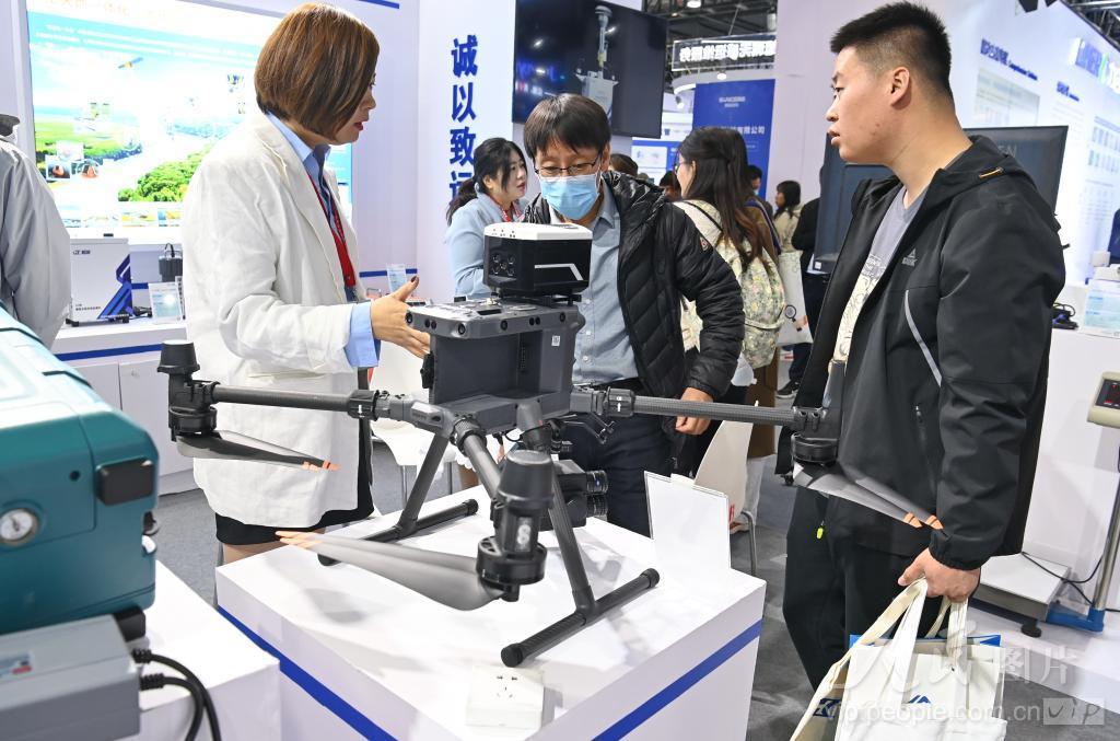 2024年4月10日,第二十二届中国国际环保展览会上展示的H6型微型环境空气质量监测系统(无人机款)。