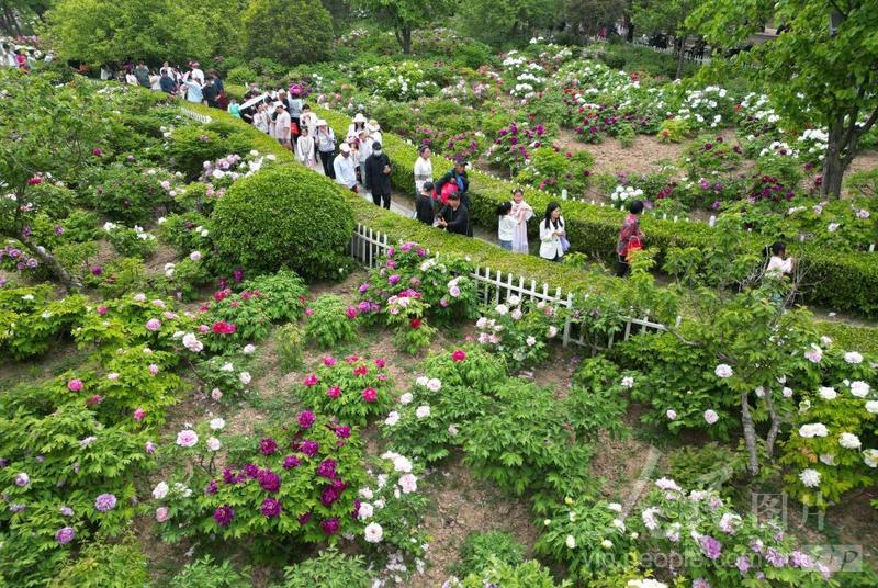 近日,山东省菏泽市曹州牡丹园内的牡丹花姹紫嫣红,一派春意盎然的景象,吸引各地游客赏花游园。