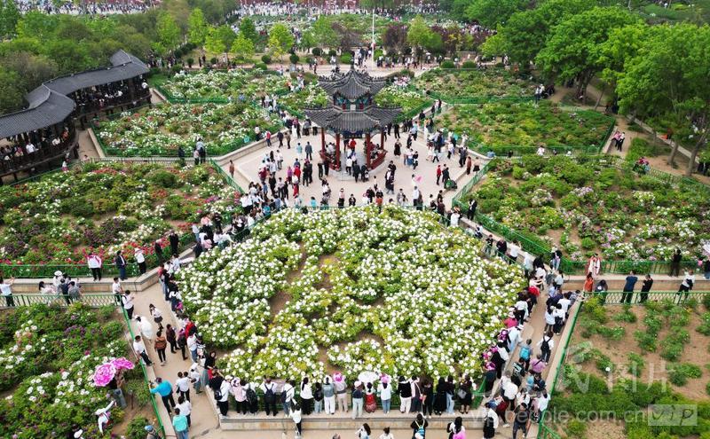 近日,山东省菏泽市曹州牡丹园内的牡丹花姹紫嫣红,一派春意盎然的景象,吸引各地游客赏花游园。