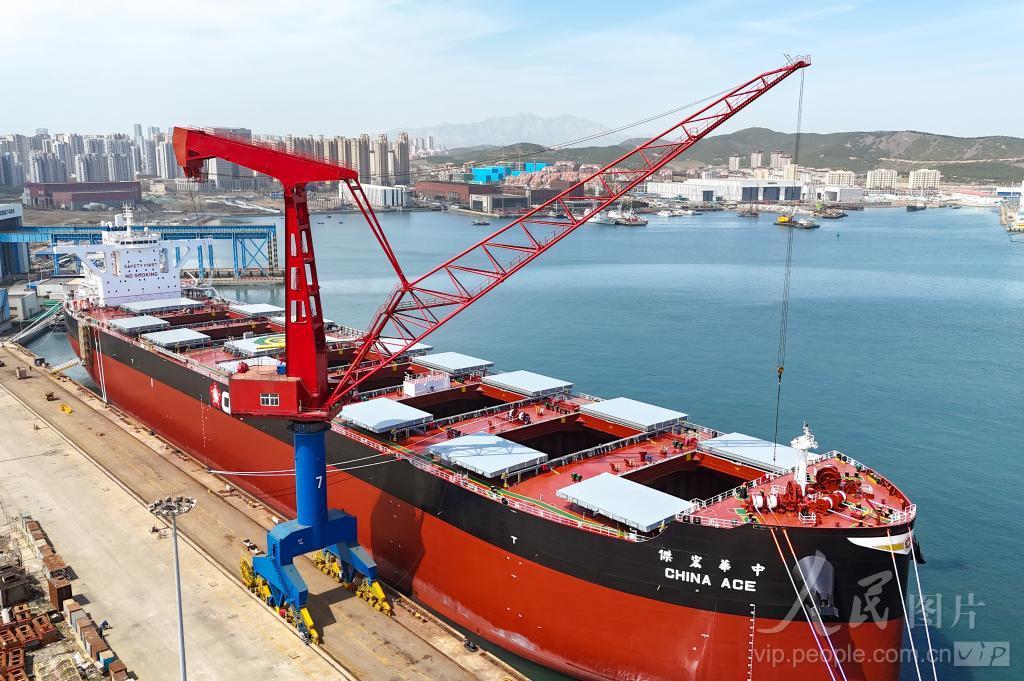4月17日,在青岛西海岸新区海西湾船舶海工产业基地,“中华宏杰”轮即将交付。