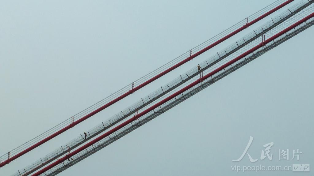 2024年4月17日,正在建设中的广西钦州龙门大桥。龙门大桥项目路线全长7.637公里,其中桥梁总长6597米,主航道桥采用主跨1098米单跨吊全漂浮体系钢箱梁悬索桥,可满足2万吨级邮轮通航要求。大桥建成通车后,将防城港与钦州港的行车时间由原来的1.5小时缩短至25分钟左右。