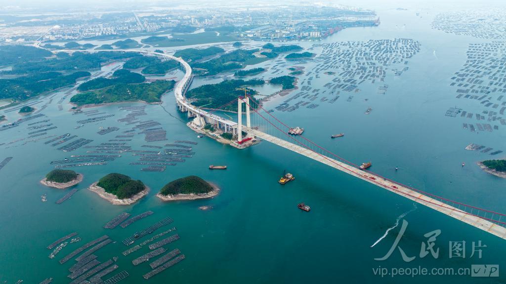 2024年4月17日,正在建设中的广西钦州龙门大桥。