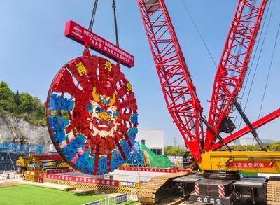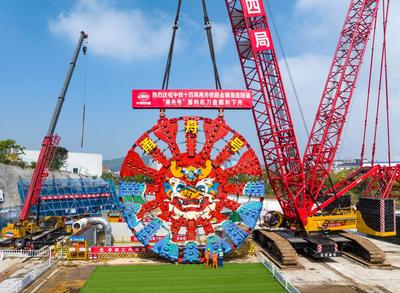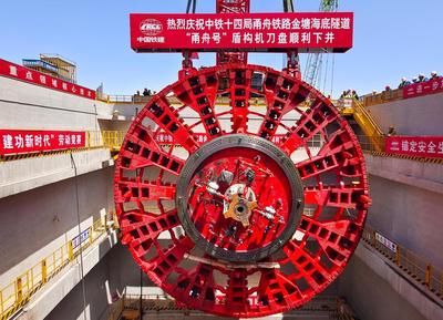 2024年4月18日,位于浙江省宁波市北仑区的甬舟铁路金塘海底隧道施工现场,一个直径14.57米,重460吨的盾构机刀盘顺利吊装下井,并成功安装在主驱动上,标志着“甬舟号”盾构机组装完成,为甬舟铁路金塘海底隧道盾构机始发穿海奠定基础。 甬舟铁路金塘海底隧道西起宁波市北仑区,东至舟山市金塘镇,全长16.18公里,其中盾构段长11.21公里。甬舟铁路西起宁波东站,东至定海区白泉镇,设有7个车站,线路全长约77公里,设计时速250公里。项目建成后对于完善铁路网布局,推动宁波舟山一体化、同城化发展等具有重要意义。