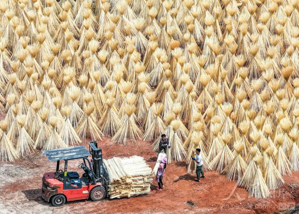 2024年4月18日,江西省抚州市南丰县白舍镇瑶陂村六源生物能源科技有限公司,工人正忙着收晾晒好的竹丝。