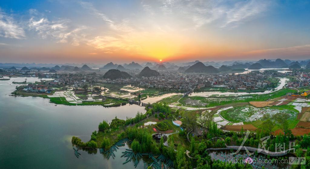 2024年4月19日,普者黑风景区日出,如诗如画的田园山水美景,宛若仙境。