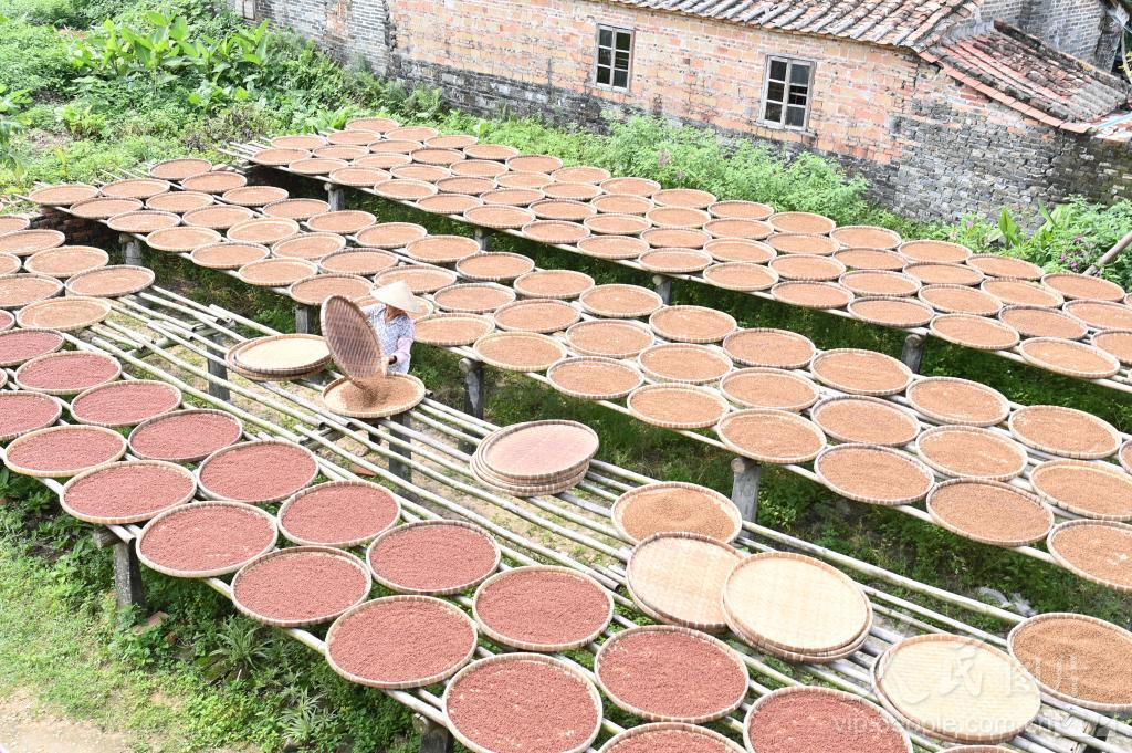 2024年4月26日,在广西北海市合浦县廉州镇乾江街一家手工作坊,工人忙着晒制沙谷米。