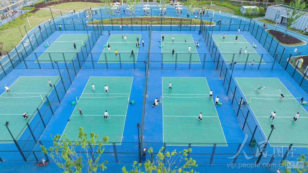 2024年5月1日,市民纷纷来到江苏省宿迁市沭阳县体育公园参加各类体育活动,强身健体,享受假期运动带来的快乐。