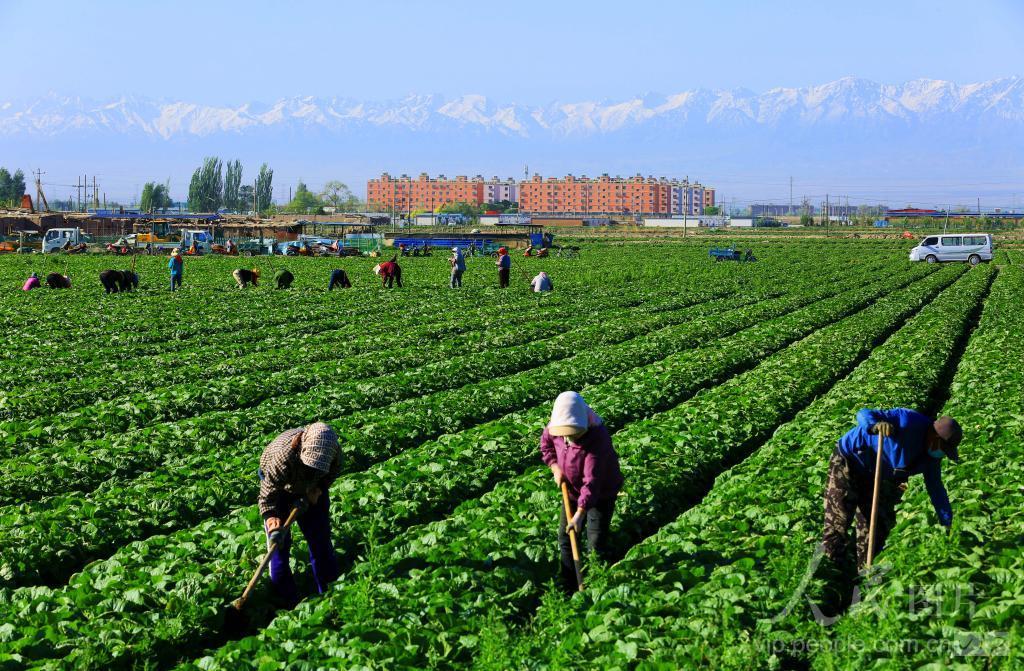 2024年5月12日,在甘肃省张掖市甘州区长安镇河满村千亩供港蔬菜基地,菜农正在进行娃娃菜除草作业。 近年来,张掖市甘州区长安镇立足城郊优势,瞄准粤港澳大湾区“菜篮子”需求,大力推进各类优质蔬菜规模化、标准化种植,绿色无公害供港蔬菜链条不断延伸,为农民增收、乡村振兴注入了强劲动力。
