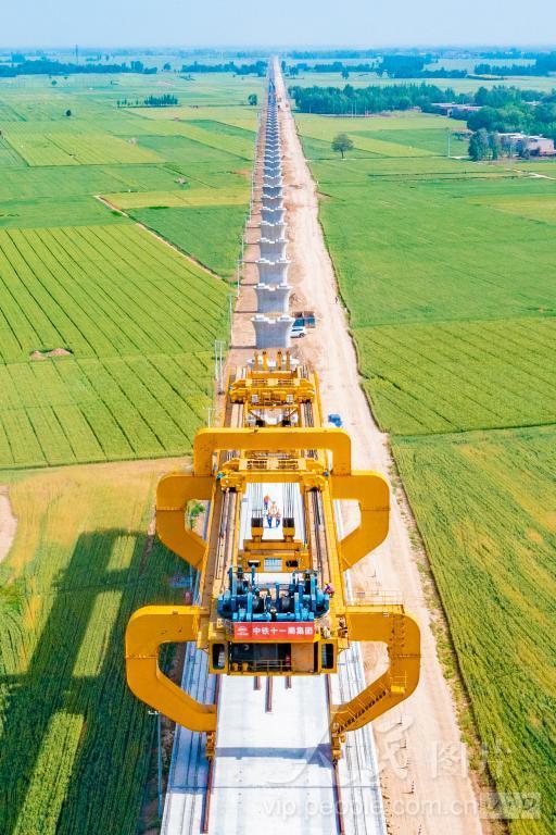 2024年5月14日,河北省衡水市枣强县,建设者正加紧推进雄商高铁施工。 雄商高铁是我国“八纵八横”高速铁路网的重要组成部分,正线全长552公里,设计时速350公里。建成通车后,对助力雄安新区建设,进一步完善京津冀地区铁路网结构,带动沿线地区经济社会发展具有重要意义。