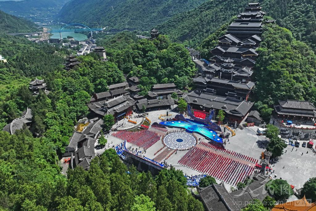 2024年5月15日,第十三届中国乌江苗族踩花山节在重庆彭水苗族土家族自治县蚩尤九黎城开幕。身着盛装的苗家儿女同唱娇阿依、齐跳踩花山舞,共庆传统踩花山节。