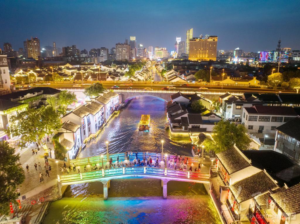 2024年5月21日,游客在大运河江苏无锡段的清名桥历史文化街区游览。 近年来,江苏省无锡市清名桥历史文化街区围绕夜购、夜食、夜游、夜娱、夜秀、夜读等主题,推出多项活动,拉动消费,激活夜经济。