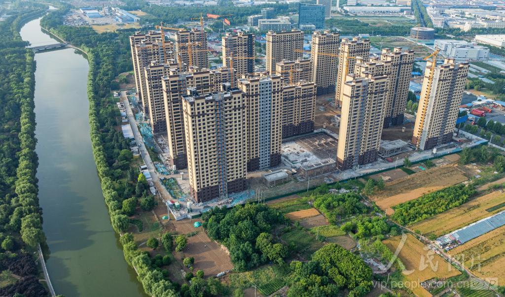 2024年5月26日,江苏省宿迁市沭阳县南部城区的龙汪丽居安置小区,一幢幢小高层拔地而起,与碧水绿树交相辉映。
