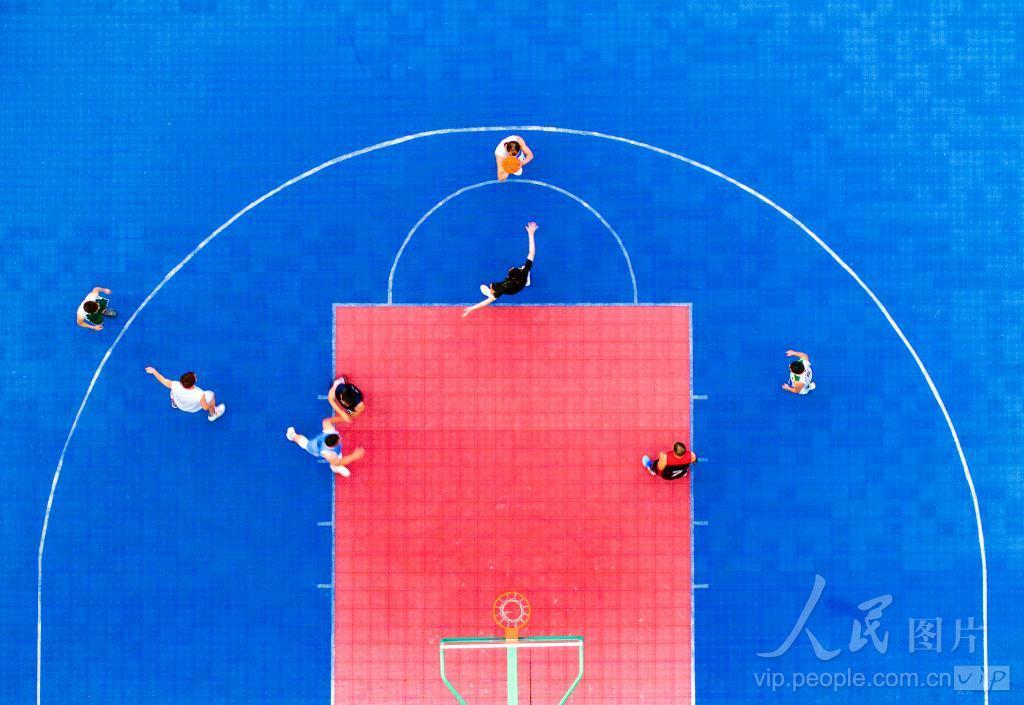 2024年6月11日傍晚,人们在安徽省芜湖市繁昌区人民体育活动中心的篮球场上打篮球。