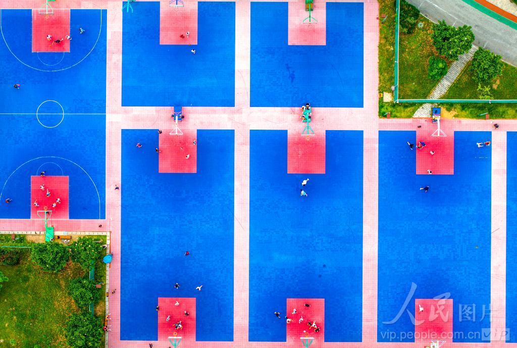 2024年6月11日傍晚,人们在安徽省芜湖市繁昌区人民体育活动中心进行打篮球、踢足球、跑步等健身运动,尽享运动带来的快乐。 近年来,繁昌区持续完善城市体育健身基础设施,新建或改建了一批体育公园、公共体育场馆等全民健身场地,着力打造“十五分钟”健身圈,让体育运动融入群众的日常生活,不断增强群众的获得感、幸福感。