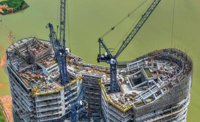 目前,中新广州知识城的知识塔项目已经完成主体结构全面封顶。