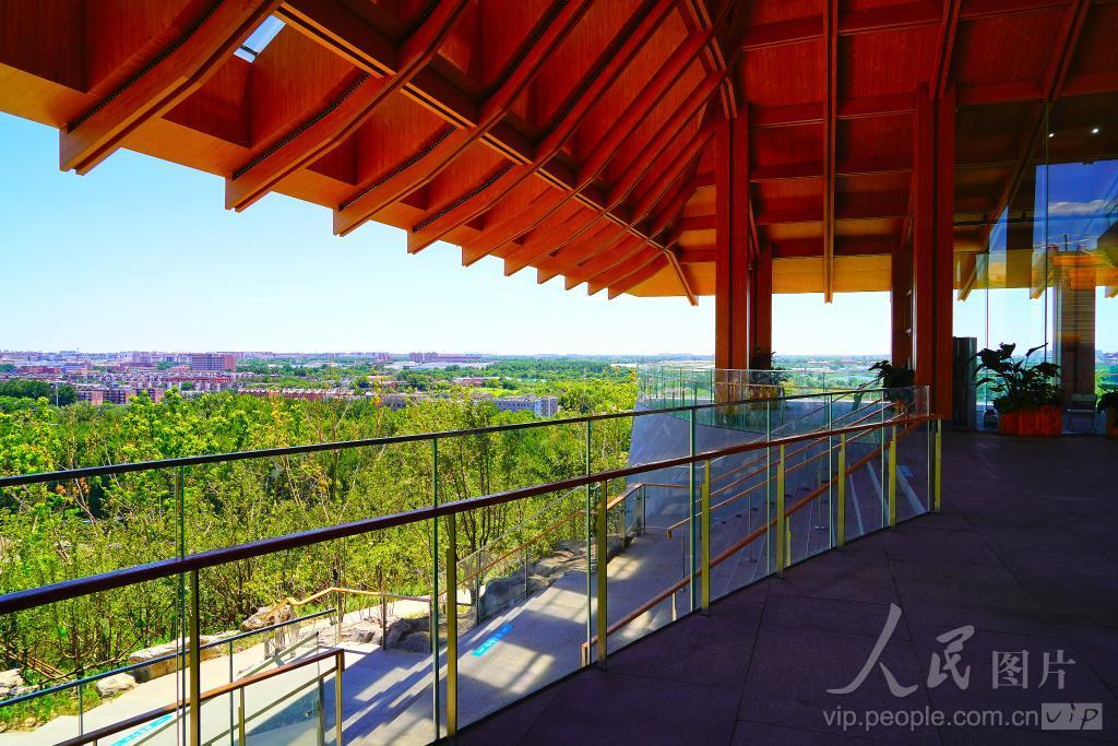 2024年6月24日,北京天空湛蓝,白云悠悠,迎来“高颜值”好天气。在南苑森林湿地公园59米高观景台俯瞰南城。郁郁葱葱的树林、城市建筑、蓝天白云构成一幅美丽的自然生态画卷。