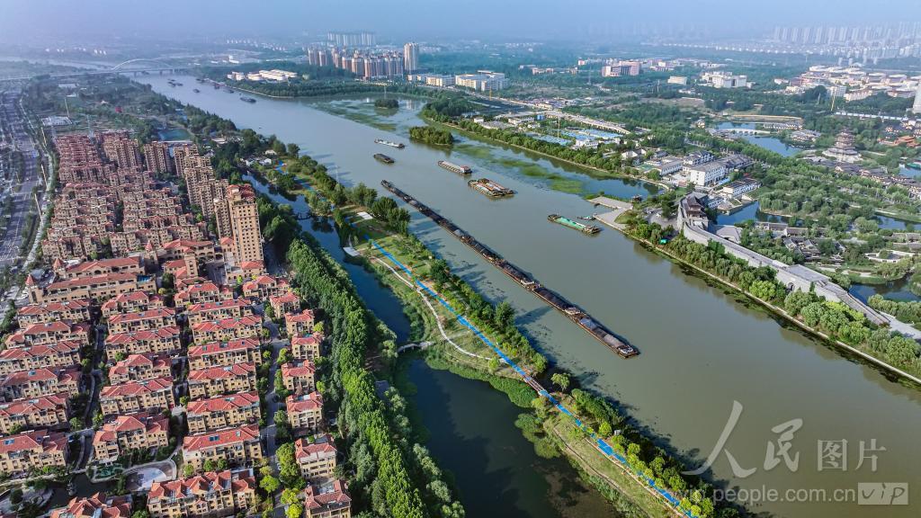 2024年6月30日,京杭大运河江苏省宿迁市宿豫段,水清岸绿,一艘艘装载农资、建材和煤炭等货物的船舶有序航行,全力保障运河沿线地区工农业生产和人们生活物资需求。