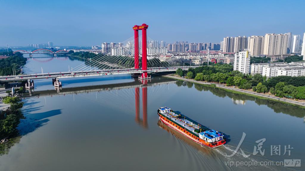 2024年6月30日,京杭大运河江苏省宿迁市宿豫段,水清岸绿,一艘艘装载农资、建材和煤炭等货物的船舶有序航行,全力保障运河沿线地区工农业生产和人们生活物资需求。