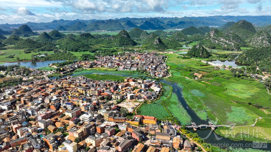 2024年7月11日,云南省文山壮族苗族自治州丘北县双龙营镇普者黑村,山水田园、湖泊峰林与彝族村寨相映成趣,构成一幅和美的乡村画卷。