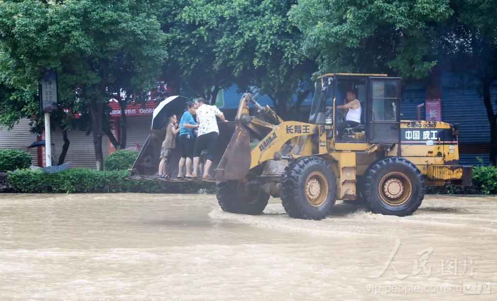 2024年7月11日,垫江县澄溪镇政府组织铲车,转移受灾的群众。
