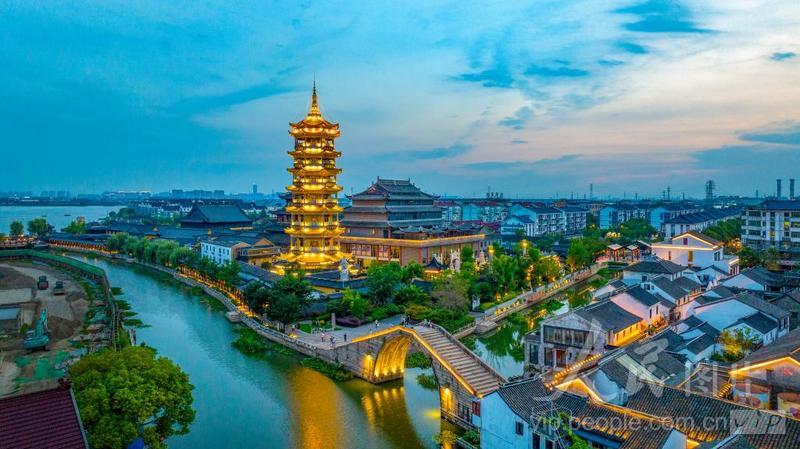 2024年7月8日,大运河畔的苏州平望夜景璀璨。
