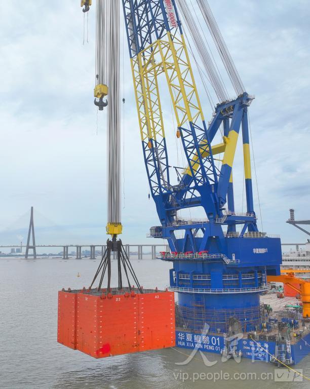 2024年7月14日,由南通振华重装建造的华夏金租5000吨自航式全回转起重船“华夏鲲鹏01”开始3500吨吊重试验。