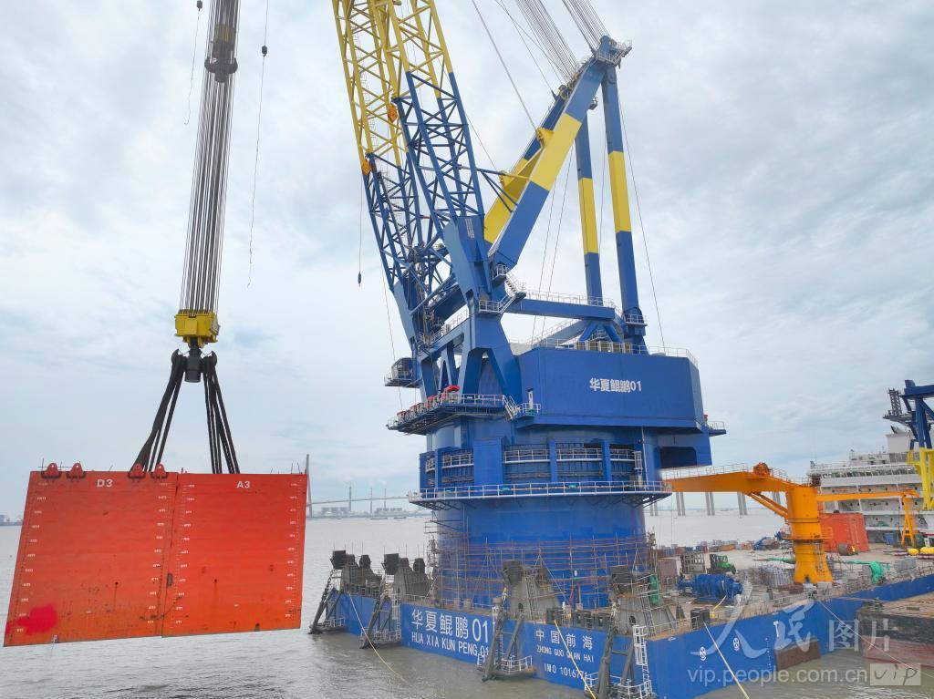 2024年7月14日,由南通振华重装建造的华夏金租5000吨自航式全回转起重船“华夏鲲鹏01”开始3500吨吊重试验。