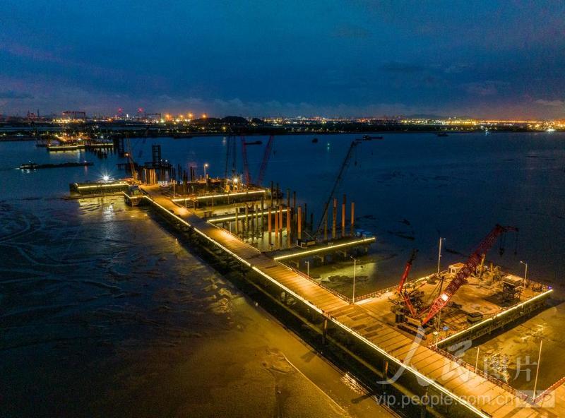 2024年7月21日,广州南沙,建设中的万龙大桥。