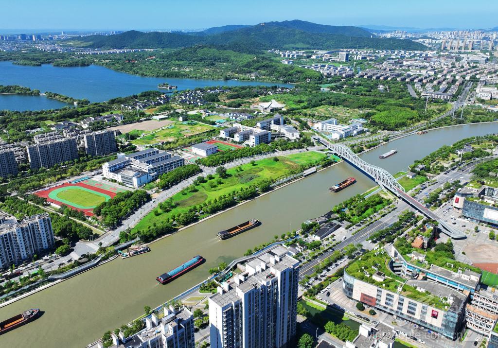 2024年7月29日,古城苏州段京杭大运河上,一艘艘货船往返穿梭、一派暑运繁忙景象。 据悉,京杭大运河(苏州段)位于长江下游的太湖流域,北起与无锡接壤的苏州市相城区望亭镇五七桥,穿过苏州城区;南至江苏与浙江交界的油车墩,全长约96公里。京杭大运河(苏州段)全线为四级航道标准,是全国第一条标准化文明样板航道,至今依然承担着重要的航运作用。