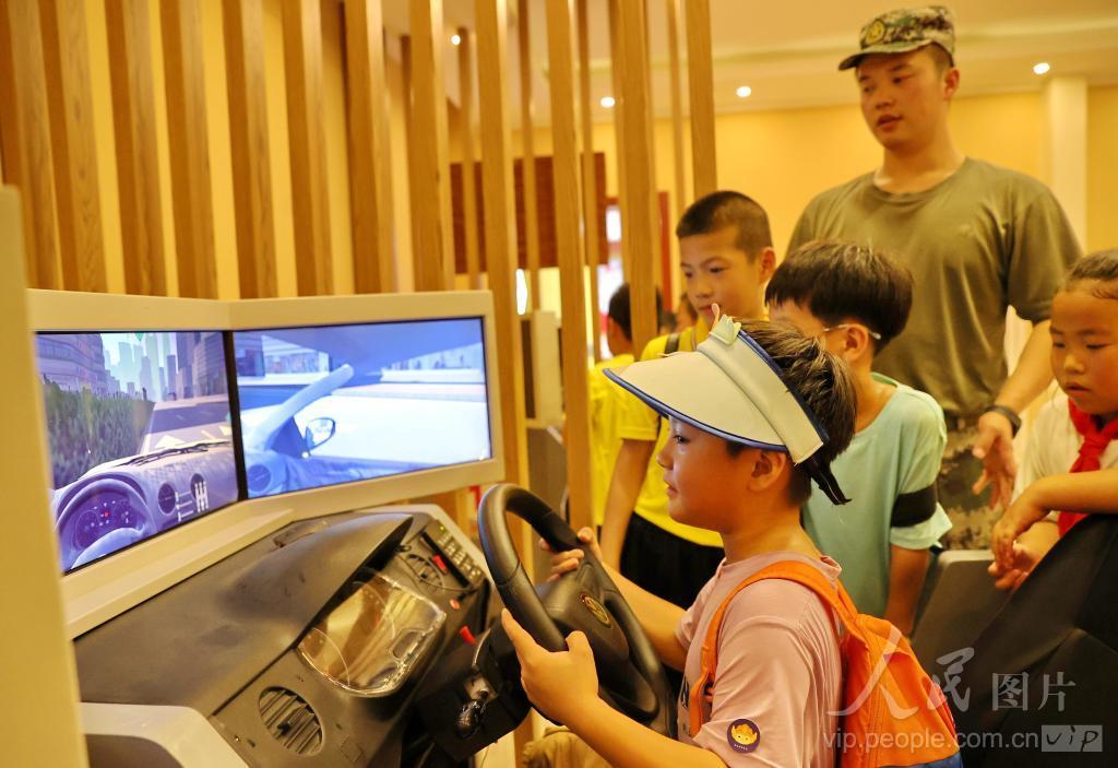 2024年7月31日,河北省秦皇岛市某驻地部队,小朋友在阳光心理服务站体验VR设备。