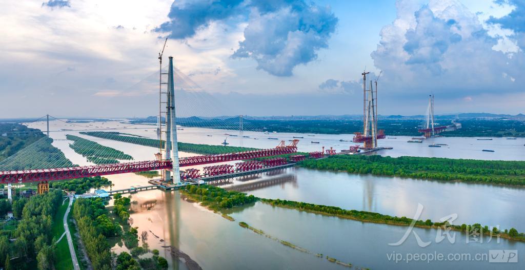2024年8月1日,巢马城际铁路马鞍山长江公铁大桥建设如火如荼。