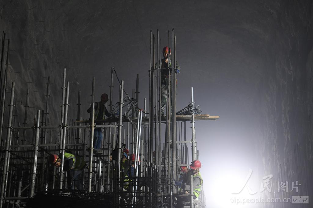 8月1日,建设者在位于云南丽江的滇中引水石鼓水源工程地下泵站紧张施工作业。