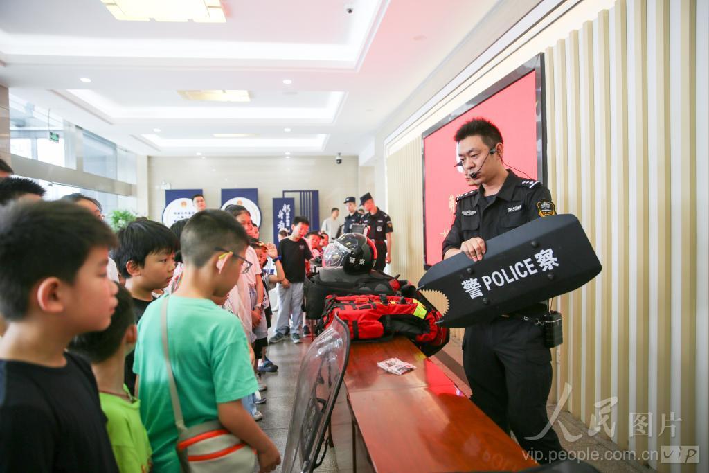 2024年8月2日,江苏省如皋市公安局组织开展了“‘漆’彩夏日 平安‘童’行”警营开放日活动。通过零距离接触防暴盾牌、防弹头盔、防弹衣等警用装备, 体验警务工作,让小朋友们解锁不一样的假期“警”彩。